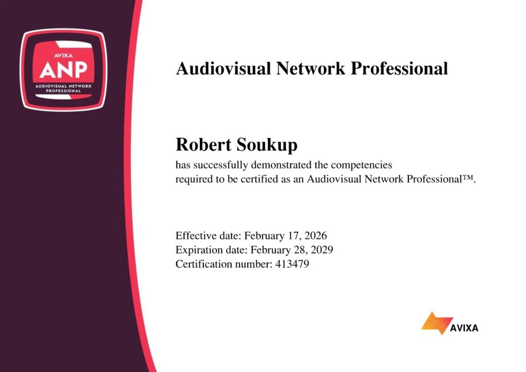The IVC-D certification demonstrates proficiency in designing intelligent video solutions that meet the demanding requirements of modern audiovisual installations. This training is particularly relevant for media ministry work, where reliable video systems are essential for worship services, streaming, and multi-site campus connections.